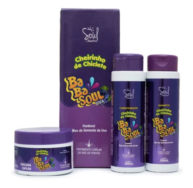 A linha capilar Cheirinho de Uva BabaSoul da Soul Cosméticos auxilia na hidratação dos cabelos, sendo ideal para quem ama fios hidratados e com perfeita penteabilidade.